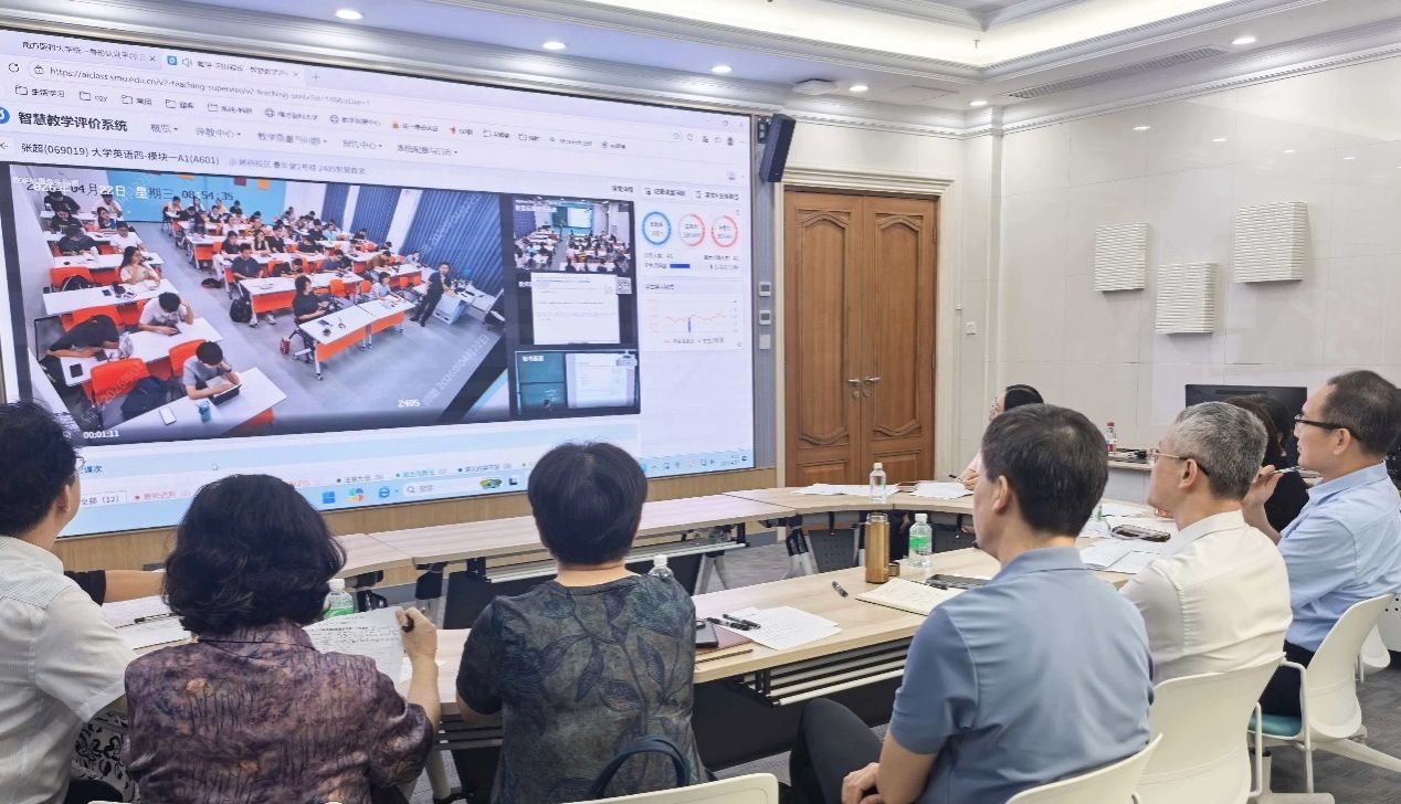 副校长许可慰,校教学督导团专家代表,学生处、人事处、教务处、教学发展中心、国有资产与实验室管理部以及护理学院、外国语学院相关负责人共同参与。与会人员通过智慧教学评价系统对两校区当日1-2节部分课程进行了线上实时巡课,并专门回看了护理学院、外国语学院相关课堂的教学录像。