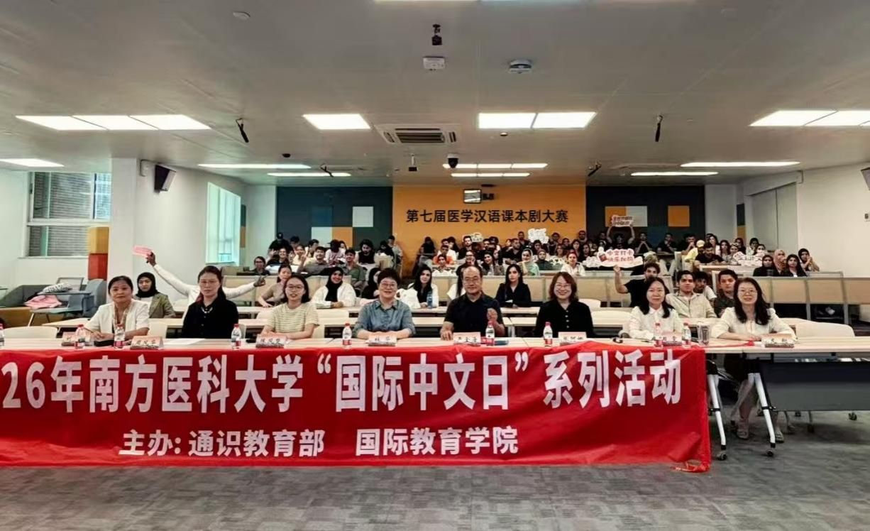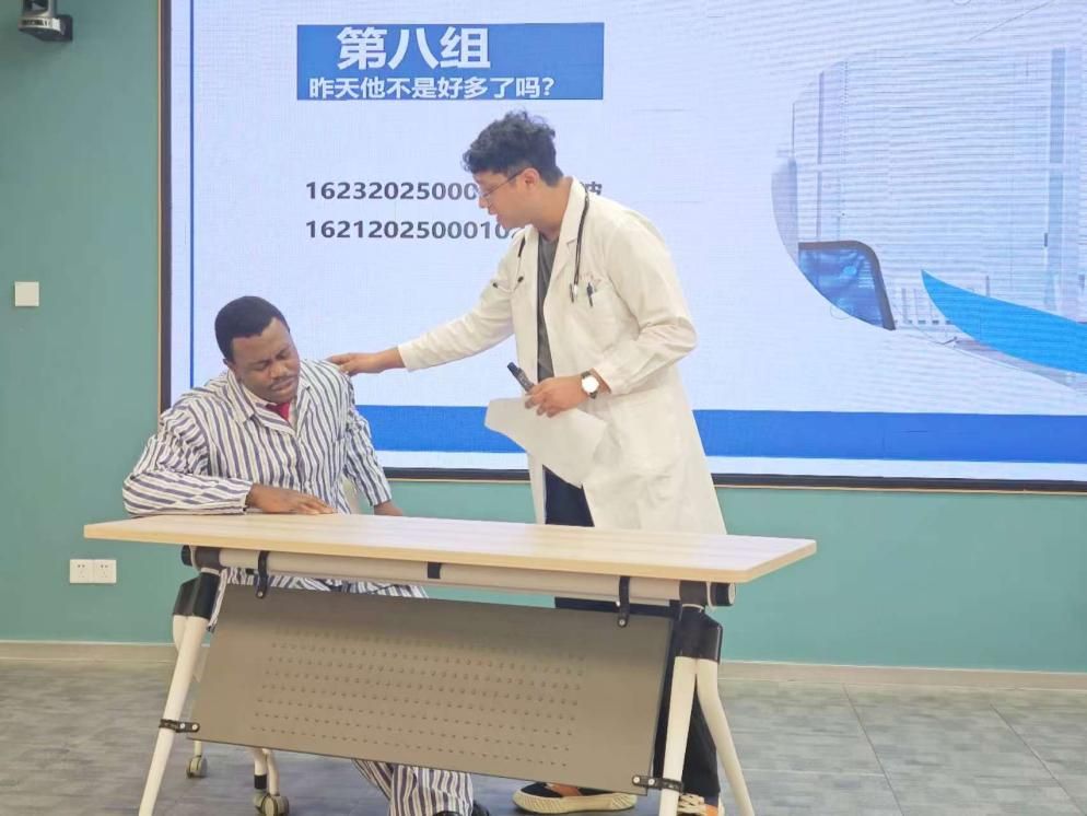 4月27日,在通识教育部和国际教育学院联合主办的“医语同行·筑梦健康”——第七届留学生医学汉语课本剧大赛的舞台上,一群来自世界各地的留学生,用中文当台词、临床病例当剧本,把医院诊室的“人间烟火”搬上了舞台。