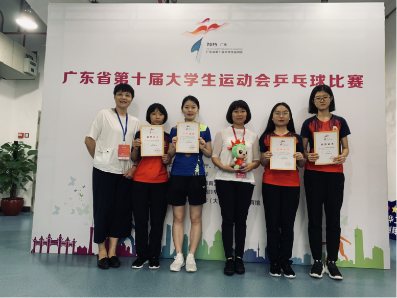5月8日至16日,第十届大学生运动会乒乓球项目在华南理工大学大学城校区体育馆展开。来自全省各高校的60多支参赛队共一千多名运动员参赛。经过九天激烈的角逐,我校乒乓球运动队在教练员曹静茹的指导下,队员池慧丽、金书羽、胡子衿、崔可茵取得了两项突破:我校第二临床医学院的金书羽荣获甲组女子单打第三名,乒乓球运动队荣获甲组女子团体第七名。