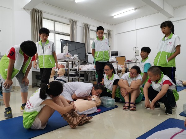 夏令营开班当天,大家在团建活动中熟悉了彼此,学习了志愿者精神及服务礼仪技巧的知识以及进行了门诊导诊服务的培训。活动中,让他们印象最深刻的活动是门诊导诊工作,每天早上八点,工作人员就开始为患者提供导医导诊、协助使用自助设备、就诊报到等服务,虽然长时间站立很累,但始终坚守在岗位上,积极为患者服务。在夏令营期间,医院临床技能中心讲授了急救技能知识,通过实践洗手、戴手套、心肺复苏和人工呼吸,让大家对急救知识都有了更深一步的了解,学会了处理意外急救。大家还参观了大学人体科学馆,通过馆内人体解剖、病理、组织胚胎和生物标本的展示,身临其境地了解人体的奥秘,理解医学的神圣和感受生命的珍贵、健康的重要。活动期间,他们还走进了康复医学科进行探秘“康复机器人”及“医学3D打印”之旅,通过现场体验和参观,感受到了现代科技的智能化。