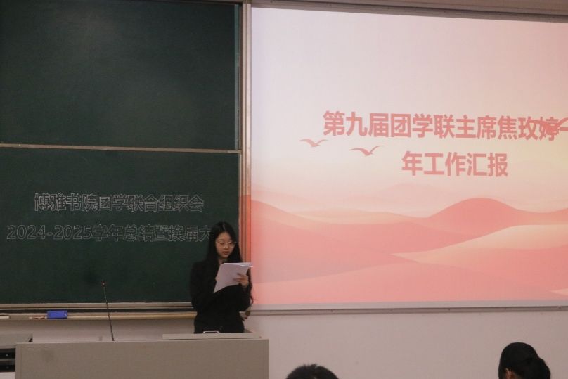 第九届团学联主席焦玫婷系统汇报了学年工作,重点展示在组织架构优化、品牌活动创新、学生服务深化等方面取得的突破。办公室、自律与权益部等7个部门负责人唐浩男、刘丽湾等依次分享实践经验,体现多部门协同推进书院建设的成效。