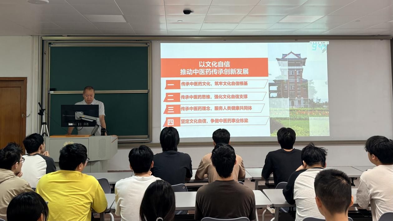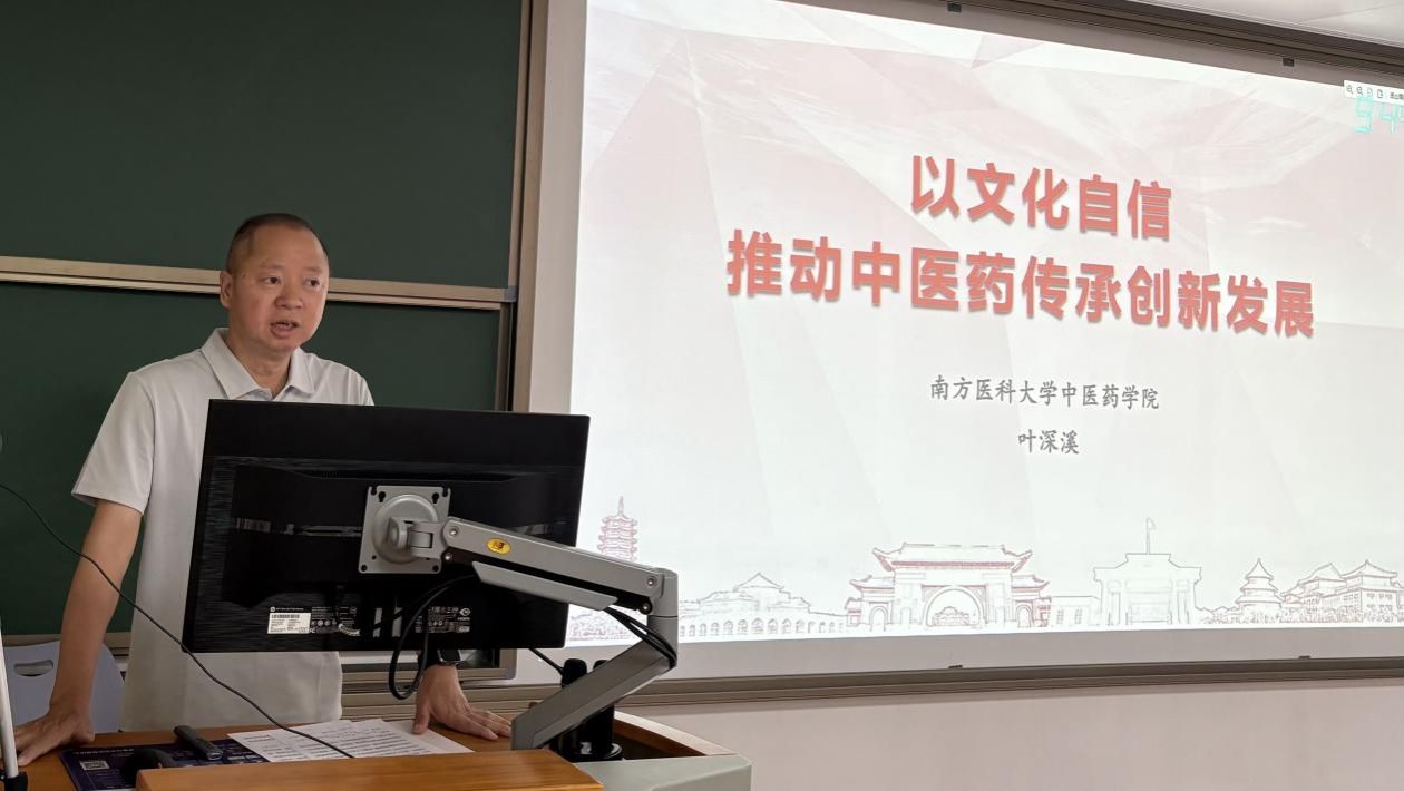 近日,中医药学院党委书记叶深溪以“以文化自信推动中医药传承创新发展”为主题,为中西医临床医学学子带来一堂兼具理论深度与专业温度的思政课。