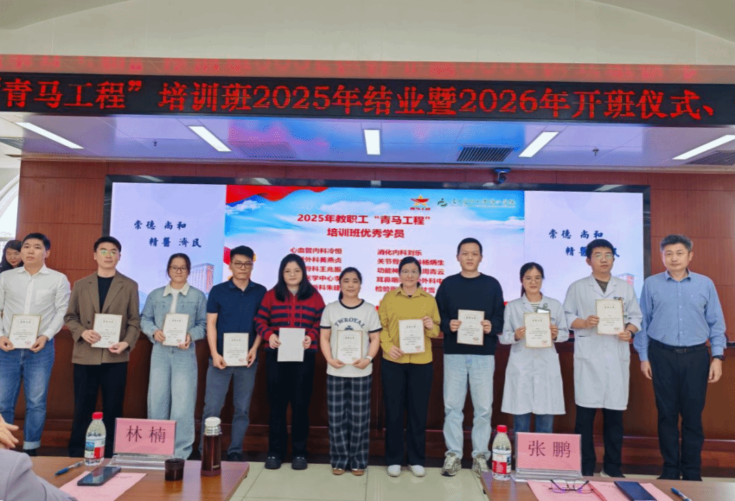 团委介绍了2026年度“青马工程”培训班整体安排。林楠为班委成员颁发聘书。新生儿科博士李昉明作为新学员代表发言,他表示,将珍惜机会、潜心学习,联系实际、学以致用,锤炼品格、做好表率,努力成长为政治坚定、业务精湛、作风过硬、人民满意的优秀医务工作者。