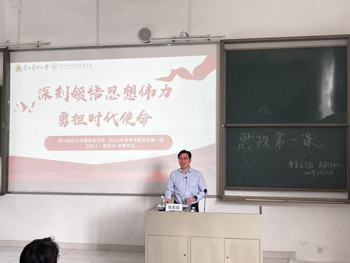 近日,康复医学院举办了以“深刻领悟思想伟力,勇担时代使命”为主题的思政第一课。学院党委书记张宏征主讲,学院教师及2024级本科生共同听课。