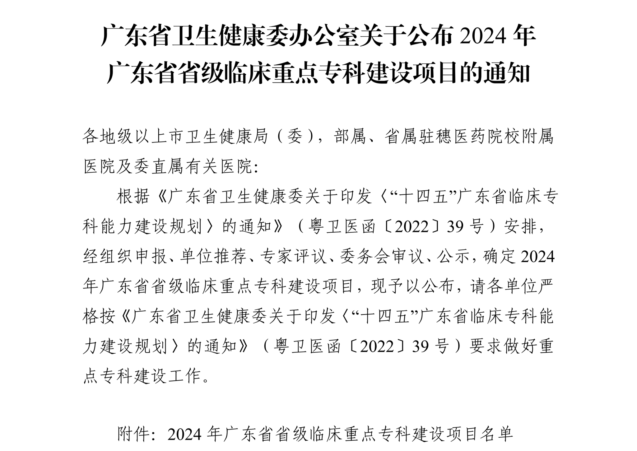 近日,广东省卫生健康委办公室正式公布2024年广东省省级临床重点专科建设项目名单,顺德医院麻醉科成功获批省级临床重点专科建设项目。至此,顺德医院“十四五”期间已有内分泌科、心血管内科、呼吸内科、神经外科和麻醉科共五个省级临床重点专科建设项目。