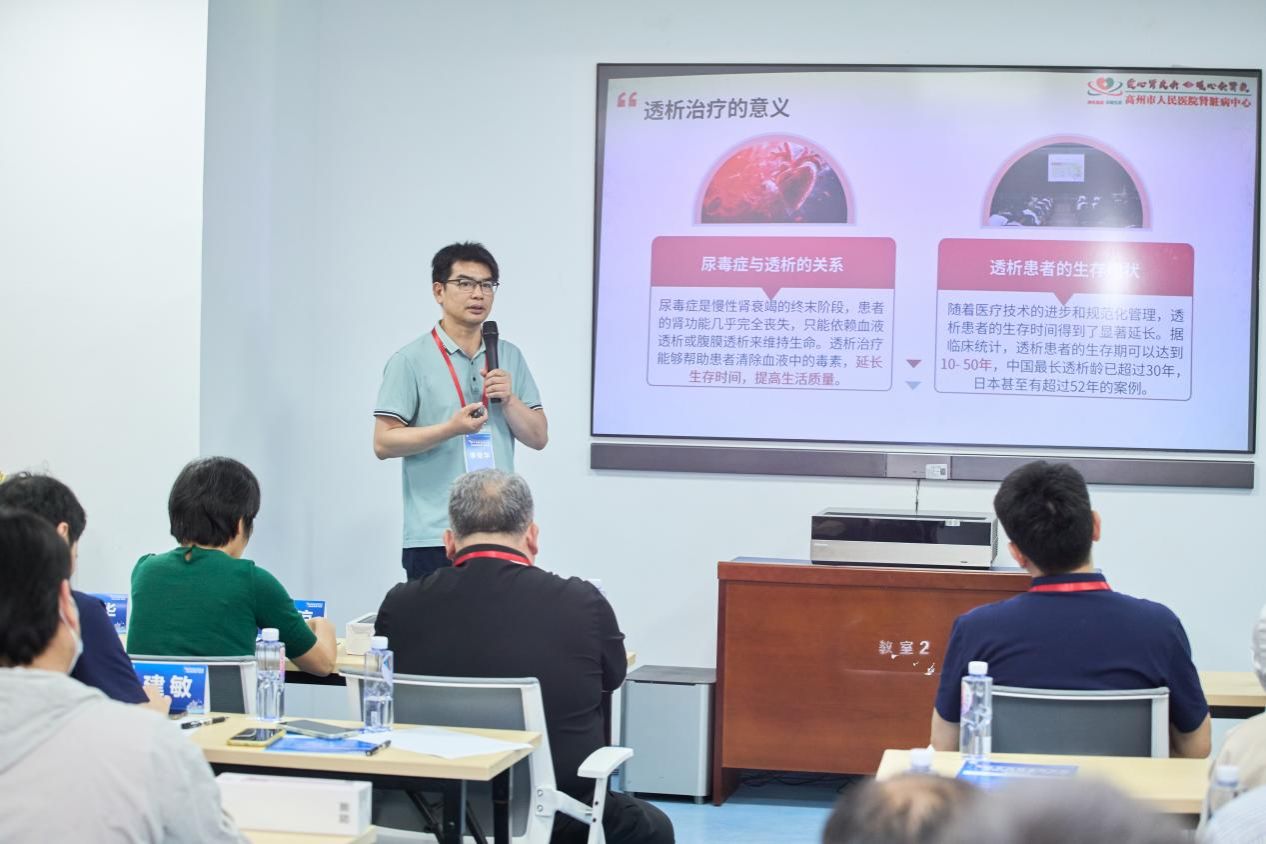 在高州站,高州市人民医院院长朱秀龙介绍了该院肾病科作为广东省临床重点专科,近年来通过升级血液净化中心与腹膜透析“双中心”,年透析量达8万例次,服务范围覆盖粤西及广西地区。珠江医院财务处副处长黄莎莎强调了技术下沉对区域医疗均衡发展的重要性,并展望未来合作方向。高州市人民医院肾内科主任李荣华以《透析肾友的“生命续航”指南:科学管理与长期生存》为题,提出“个性化透析方案+全病程管理”模式,强调通过血压控制、钙磷代谢调节及心血管事件预防,延长透析患者生存期。高州市人民医院腹膜透析中心主任邓姗姗在《居家透析的“双保险”:自动化技术+智能预警》讲座中,展示了该院自主研发的腹膜透析智能监测系统,该系统通过实时数据采集、AI风险预警及远程指导,显著降低腹膜炎等并发症发生率,助力患者实现“居家透析更安心”。