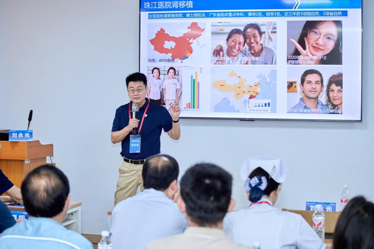 珠江医院器官移植科主任刘永光以《珠江医院肾移植》为题,详细介绍了医院在亲属活体肾移植、儿童肾移植领域的突破,指出珠江医院儿童肾移植数量连续四年位居全国前三,亲属活体肾移植数量广东省第二位。茂名市人民医院肾内科教授卢叶明以《“透”亮生活。“析”心呵护》为题,深入剖析透析患者生活质量提升的关键策略。他结合临床案例,提出通过优化透析方案、加强营养管理及心理干预,帮助患者回归社会、重拾生活信心。茂名市人民医院肾内科教授黎晓辉分享《血管通路的建立及维护》,系统讲解复杂血管通路的术前评估、术中技巧及术后并发症防治,为基层医生提供了可借鉴的规范化操作流程。珠江医院器官移植科教授范礼佩围绕《去抗原异体血管移植动静脉内瘘成形术》的临床应用展开专题报告,结合珠江医院创新实践,展示了去抗原异体血管对比人工血管在通畅率及抗感染性上的优势。
