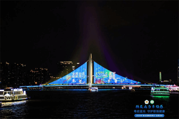 当晚七点半,珠江两岸与广州塔同步点亮象征希望与关注的蓝色灯光。以珠江夜景为背景,以城市地标为见证,“粤启蓝光”仪式寓意糖尿病防治需要全社会共同守望。这一创意设计凸显了广东以城市魅力赋能健康宣传的巧思,展现“健康广东”与“活力全运”的交融互促。