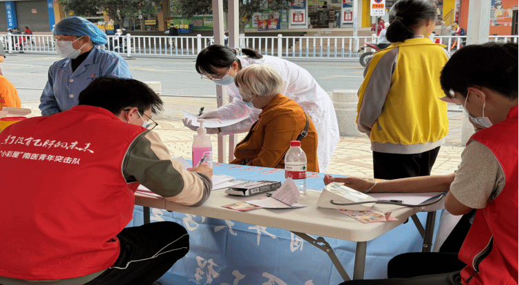 清晨,在社区医院工作人员的带领下,我们来到上百佳超市,乙肝筛查的第一站。登记处的笔尖沙沙作响,采血区的棉签一根根递出,健康宣教的同学正用方言耐心讲解……热火朝天的忙碌里,藏着医学生与这片土地的“肝”心相见。