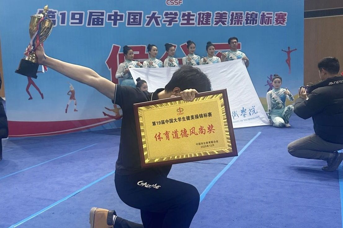 让我印象尤其深刻的,是备战健美操比赛的过程。健美操比很多人想象中更加高强度:快速的步伐切换不断消耗着体力,肺部的炸裂感让每一次呼吸都带着灼热的痛感。从队形走位到肢体控制,从节奏卡点到整体表现力,都需要大量时间去打磨。训练到后期,常常是身体已经很疲惫了,但还得一遍遍抠细节、练配合、调状态。那种累是痛苦的,但当我和队友一起咬牙撑过来,一起站上赛场时获得的成就感也是非常真实的。