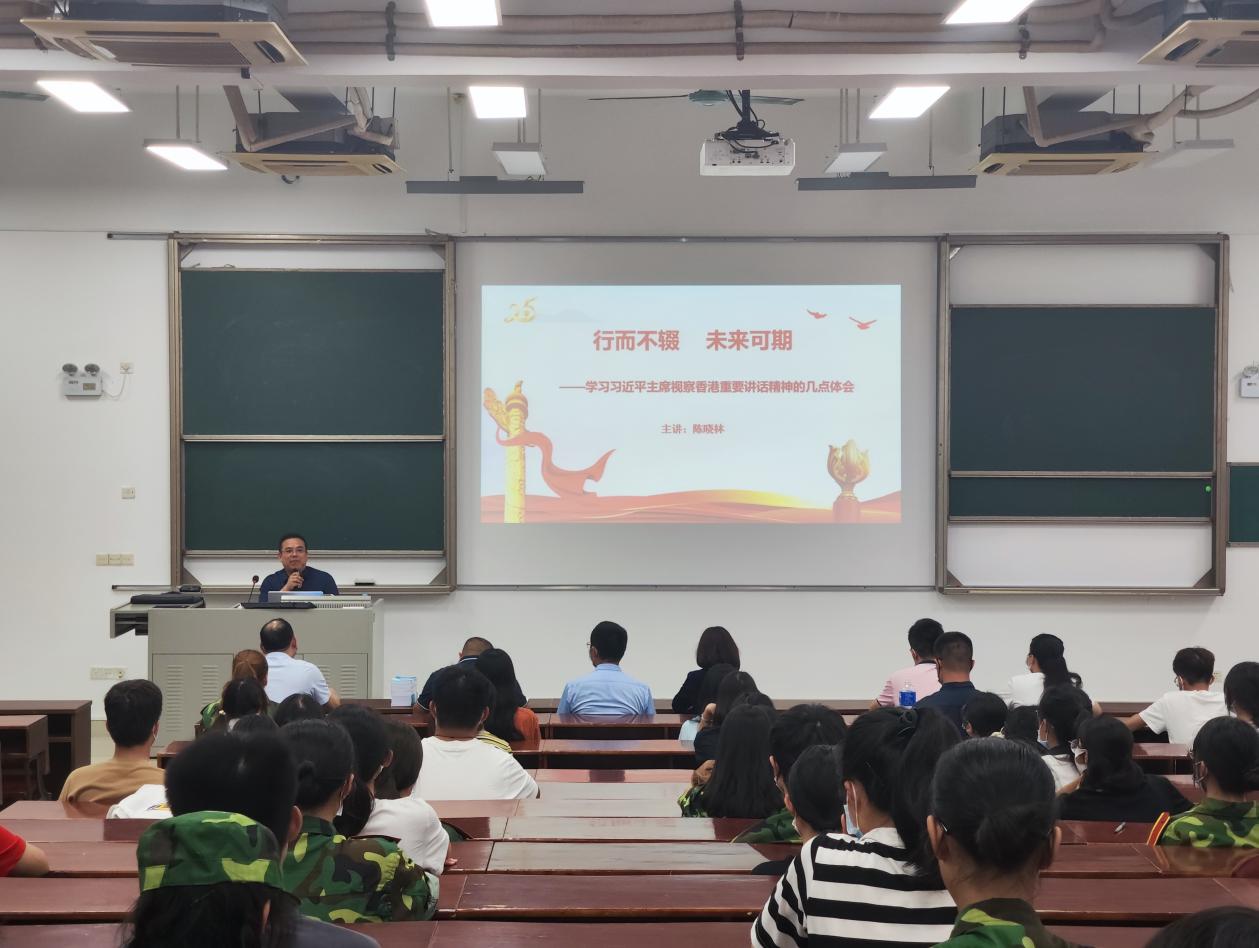 自学习贯彻《习近平谈治国理政》第四卷以来,国际交流与合作处(港澳台事务办公室)党支部按照学校统一部署,通过外请辅导、主题参观等形式,扎实开展学习教育活动。支部特邀广东省社科院特约研究员陈晓林教授来校举办“行而不辍、未来可期”专题辅导报告。陈晓林从百年未有之大变局、香港政治经济现状、“一带一路”建设、粤港澳大湾区发展、习近平主席“七一”视察香港重要讲话等方面讲解,引导大家学习和领会坚持“一国两制”和推进祖国统一的深刻内涵和重要意义。...