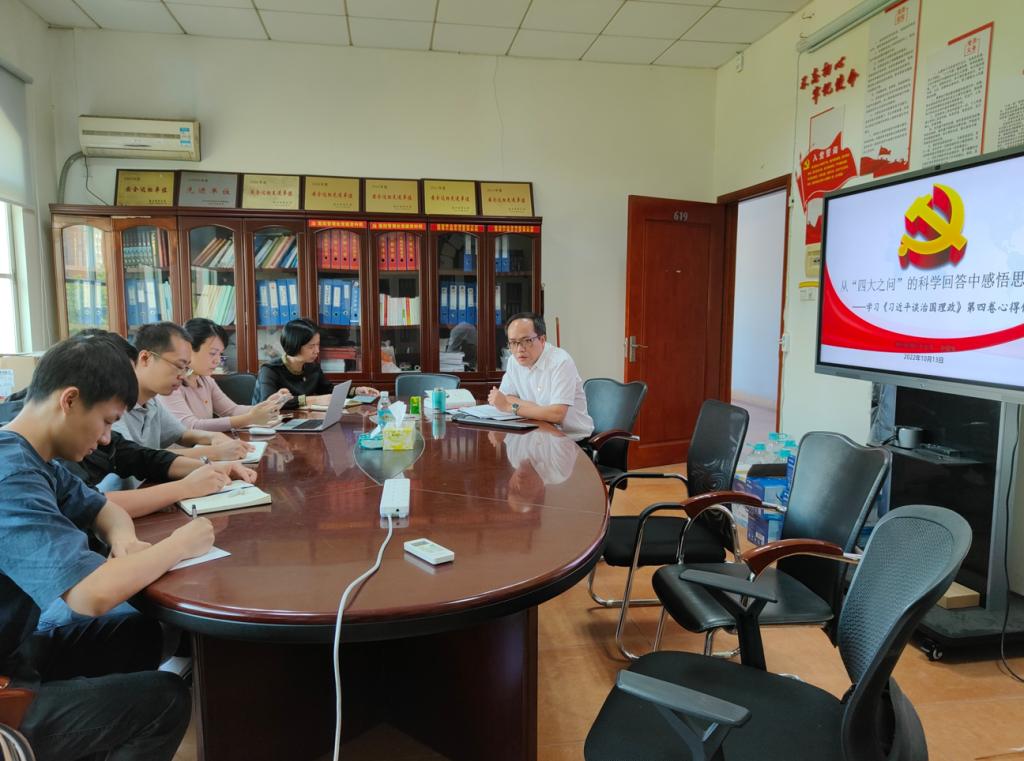 10月13日,医院管理处党支部开展主题党日活动。支部党员集体学习《习近平谈治国理政》第四卷,党支部书记、副处长郑普生以《从“四大之问”的科学回答中感悟思想伟力——学习<习近平谈治国理政>第四卷心得体会》为题讲党课,支部党员集体观看了专题片《领航》。郑普生带领支部党员学习《习近平谈治国理政》第四卷“统筹疫情防控和经济社会发展”相关内容,随后围绕学习心得讲党课。他指出,《习近平谈治国理政》第一至四卷是一...