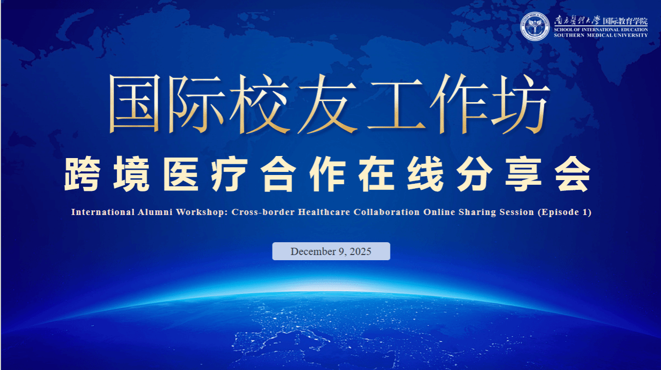 12月9日,国际教育学院以“跨境医疗合作”为主题,举办第一期国际校友工作坊在线分享会。会议汇聚了来自中国南方医院、皮肤病医院的代表,以及孟加拉国、埃塞俄比亚、尼泊尔、泰国、柬埔寨等多国校友,通过云端共话跨境医疗协同发展新模式,旨在搭建校友互联平台,推动海内外医疗及科研资源精准对接。孟加拉国校友Dr.Shapon杨帅:医者之桥跨越山海2013届MBBS专业优秀毕业生、孟加拉国长寿医疗集团创始人及管理者杨帅分享了其回...