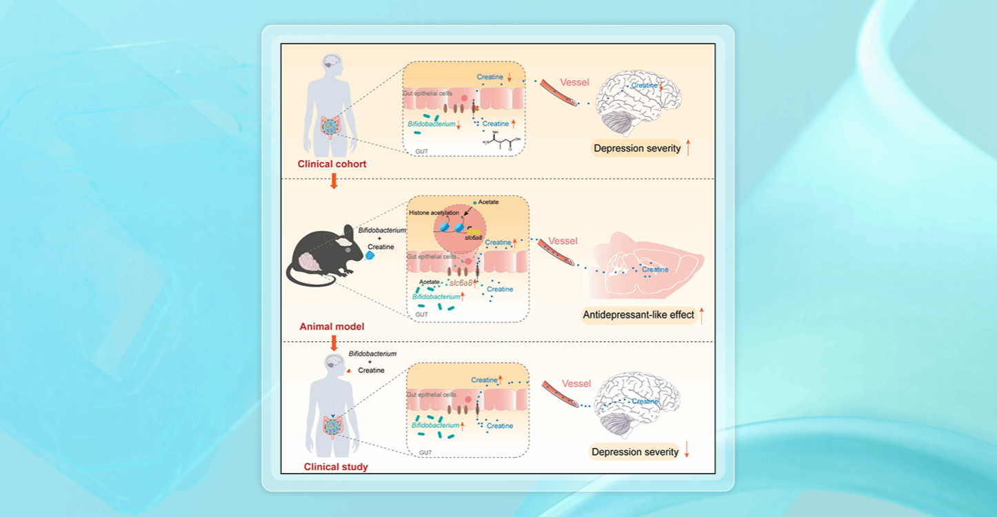 近日,基础医学院曹雄团队联合公共卫生学院赵久波团队,首次系统揭示了肠道微生物通过调控肌酸代谢影响抑郁发生发展的新机制,并提出双歧杆菌联合肌酸的协同干预策略,为抑郁症治疗开辟了新途径。抑郁症是一种全球高发的精神疾病,影响约5%的人口,亚临床抑郁症状在儿童和青少年中的患病率可达17%。然而,现有治疗手段效果有限,超过三分之二的患者无法获得有效干预。因此,寻找更安全有效的新型抗抑郁策略,已成为临床亟需突破...