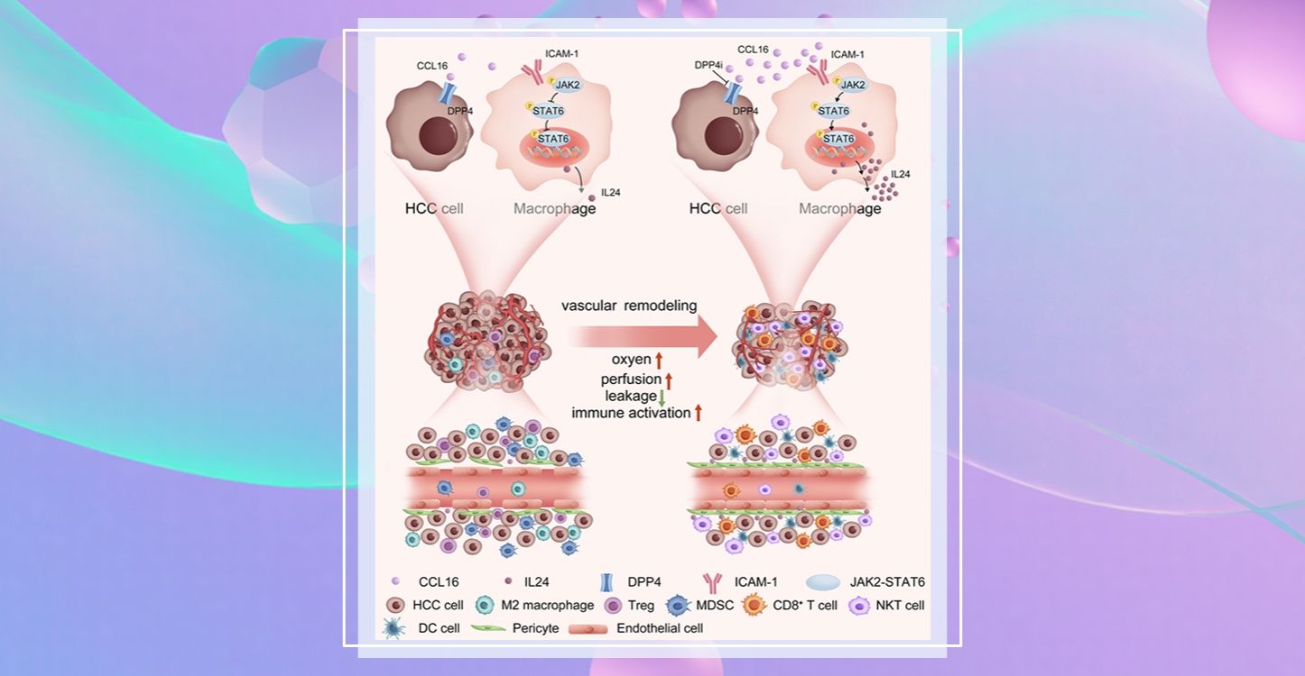 肝细胞癌(HCC)作为我国高发恶性肿瘤,其异常血管网络与免疫抑制微环境形成的双重屏障,长期制约传统治疗疗效。近日,珠江医院潘明新教授、蔡磊教授团队联合多学科专家在肝癌治疗领域取得突破性进展,首次发现趋化因子CCL16通过"血管-免疫"双向调控机制重塑肿瘤微环境,并创新性提出临床常用降糖药西格列汀与抗PD-1免疫治疗的联合应用策略。本研究团队创新性地从肝癌患者的循环肿瘤细胞(CTC)入手,发现CTC高负荷的肿瘤组织中...