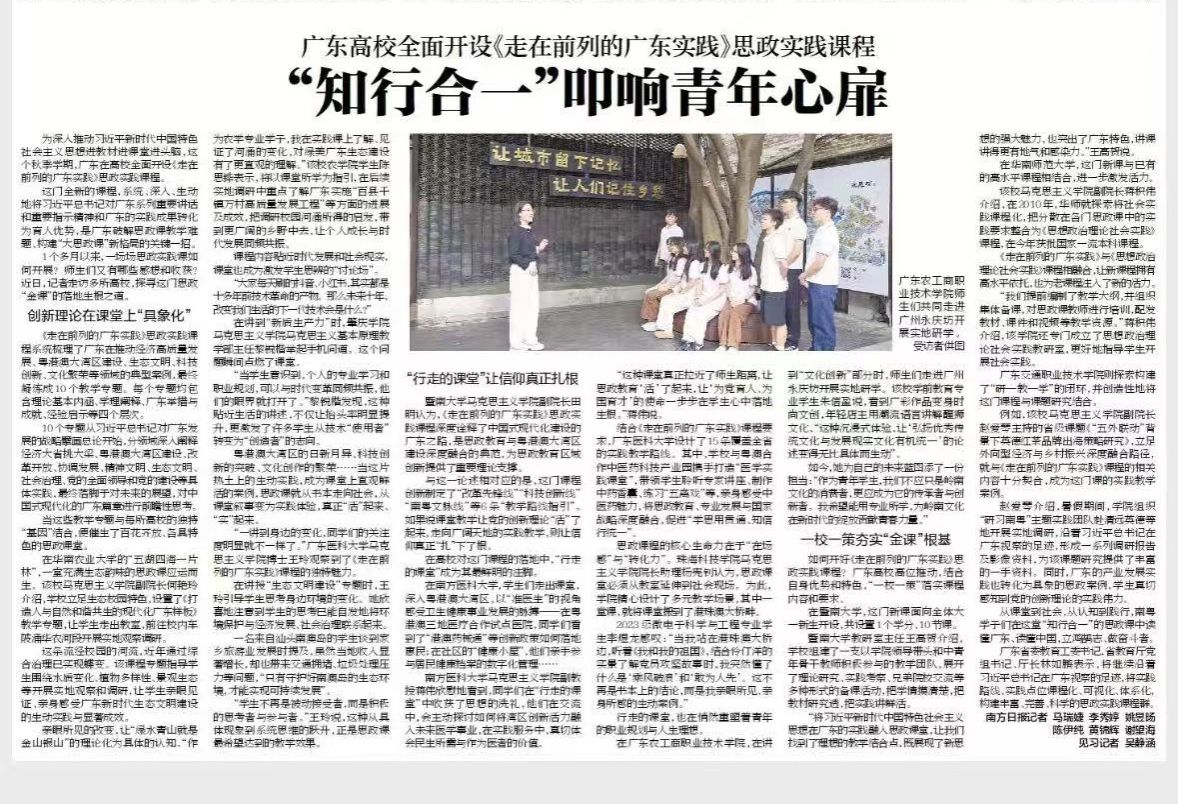 “知行合一”叩响青年心扉——广东高校全面开设《走在前列的广东实践》思政实践课程